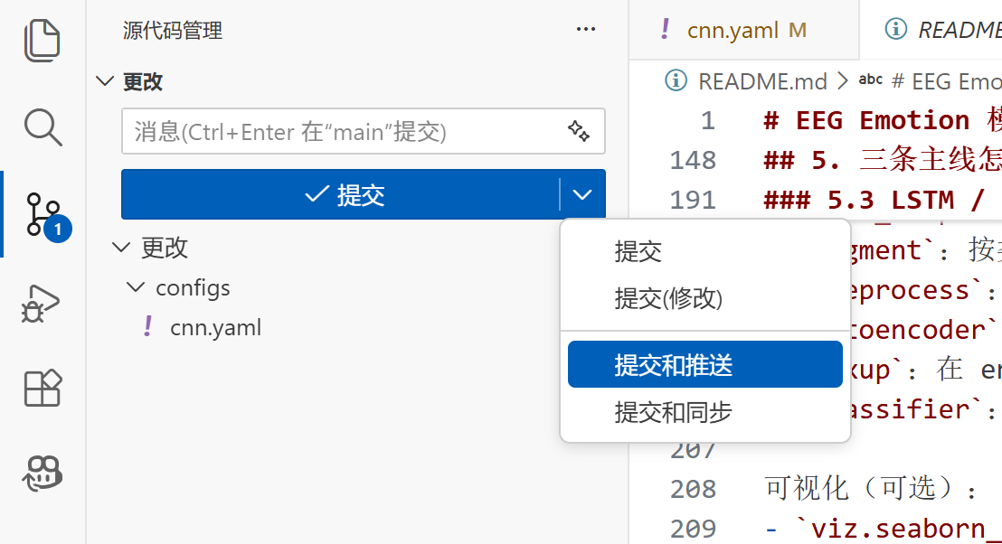 VS Code:在消息框写提交说明 → 点