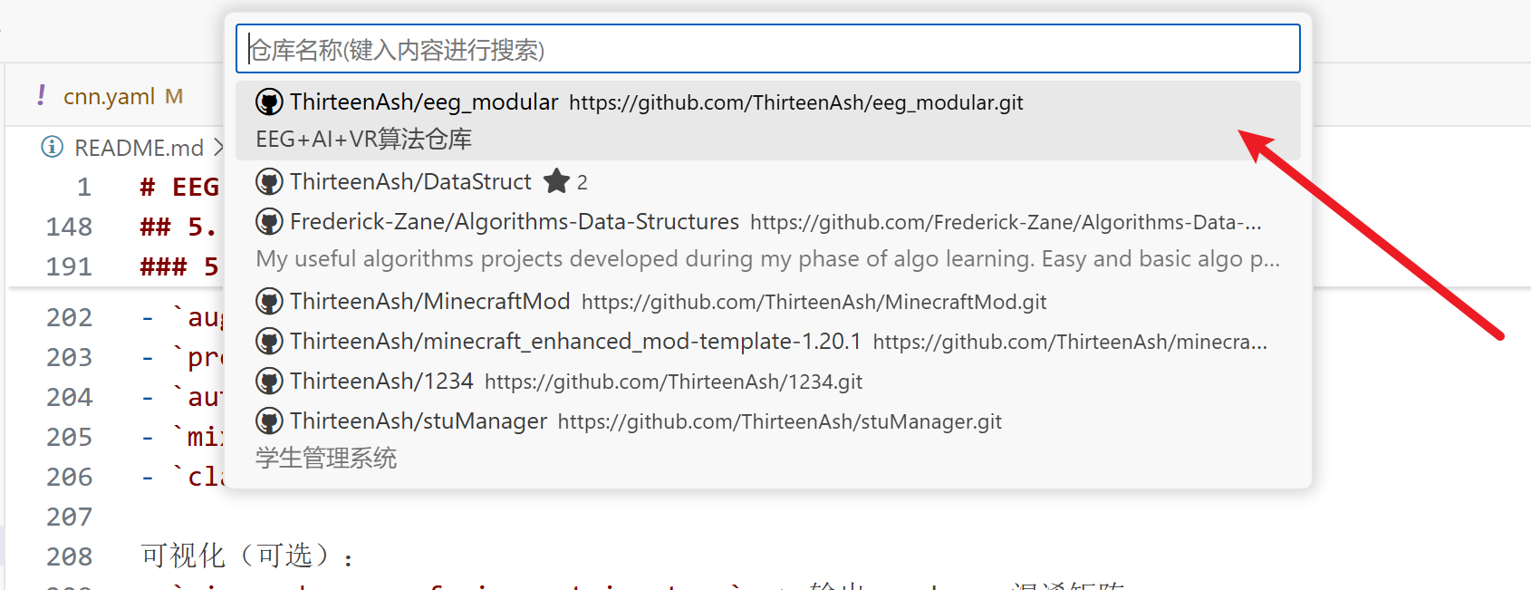 https://github.com/xxx/yyy.git(算法项目ThirteenAsh/eeg_modular: EEG+AI+VR算法仓库) - 第一次推送时可能会要求登录 GitHub(通常是浏览器授权)
